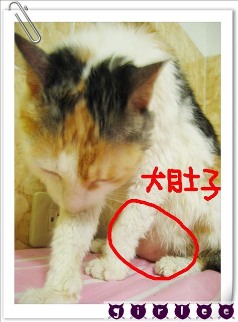 因為毛還濕濕的.沒有毛的遮蔽.肚子跑出來了.都垂下來了.![]()