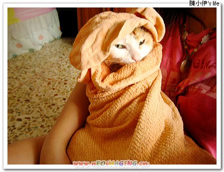 我從小幫她洗澡後.都用大浴巾把她包的緊緊的.