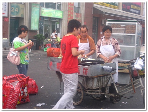 這是煎餅,用一塊薄餅加蛋一起煎,一個2元。但是我都只敢吃1小口,因為很怕吃壞肚子,剩下的幾天我就不用玩下去啦..而且我覺得北京口味都吃的很重,昨天雖然吃的很好吃,但是晚上回飯店我還是拉肚子...><~~~~~