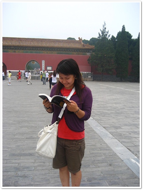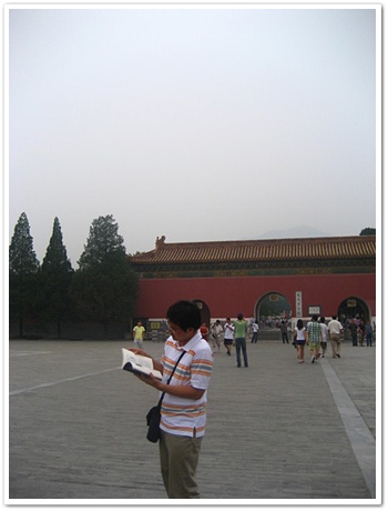 在遊覽車,我發現北京的計程車很怪,竟然駕駛座旁有個像鐵欄杆的東西圍起來,小陳說因為北京以前治安不好,司機為了自保都用成這樣,但是現在好多了.所以很多計程車都拆除了.