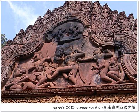 我和小蔡在女皇宮裡鑽來鑽去..欣賞著美麗的浮雕建築.讚嘆著吳哥的雕刻技術功力..
