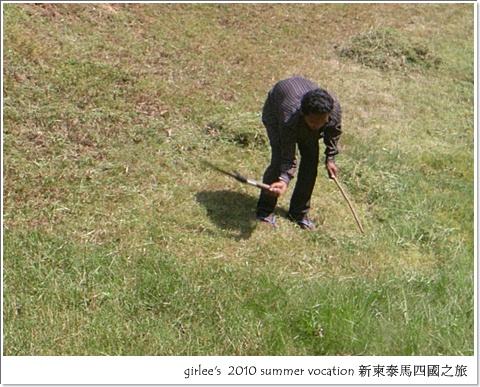 這裡的人除草不是用鋤草機..而是左手拿著竹竿..右手用鐮刀揮動著除草.