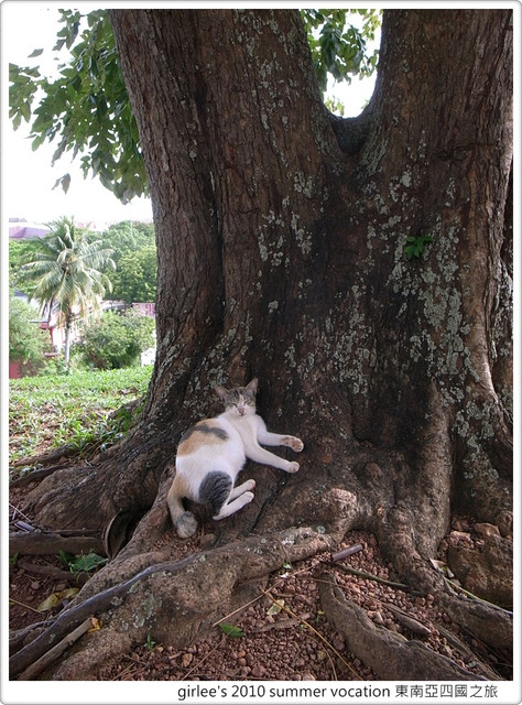 離開走下階梯時..在剛剛我們坐著的地方有棵大樹下..有隻貓咪睡得好舒適..