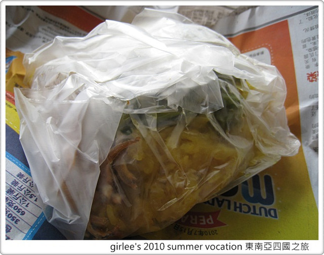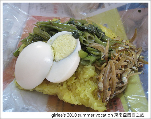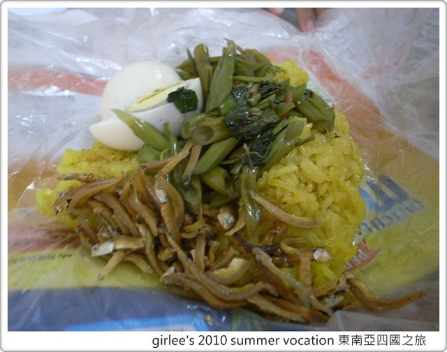 裡面的包餡很特別..除了有薑黃飯外..還有水煮蛋和菜、小魚乾..
