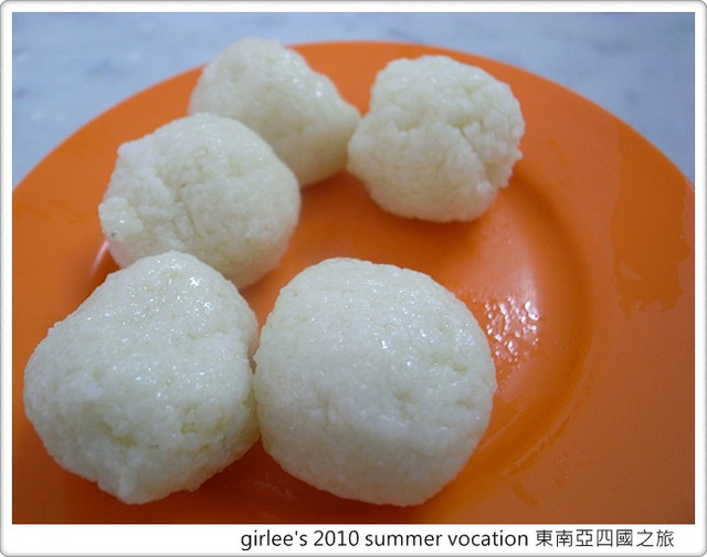 第一次吃到飯是捏成這種圓形的..配上嫩嫩的雞肉.味道還不錯^^