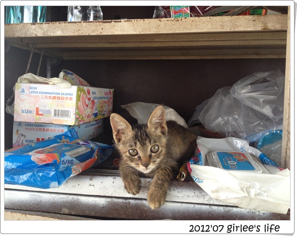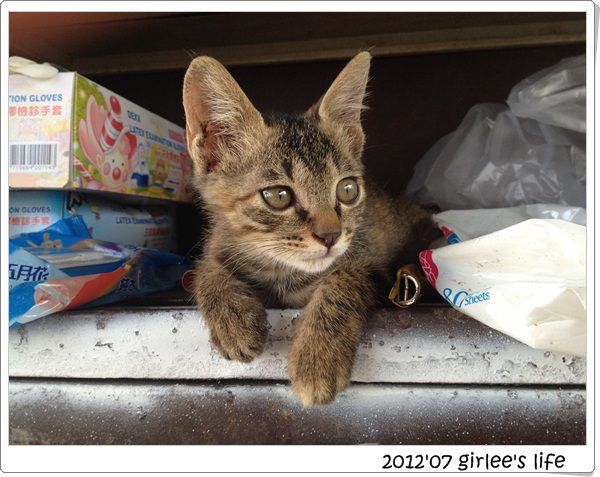 白天天氣熱..小恩恩聰明的會跑到放東西的鐵櫃裡乘涼