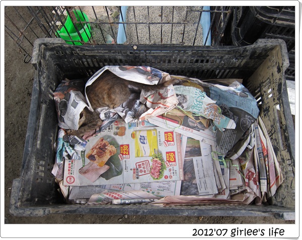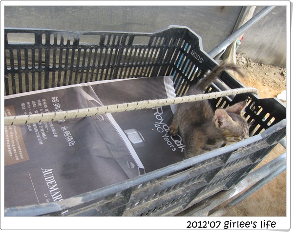 ↑↑↑溫室裡很熱..聰明的小恩恩會躲在鐵櫃裡睡覺乘涼..