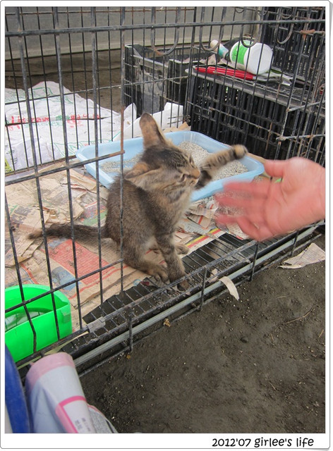 雖然有個籠子要當貓籠的.但小尾巴沒有關著它..是讓小恩恩到處在溫室裡跑來跑去.