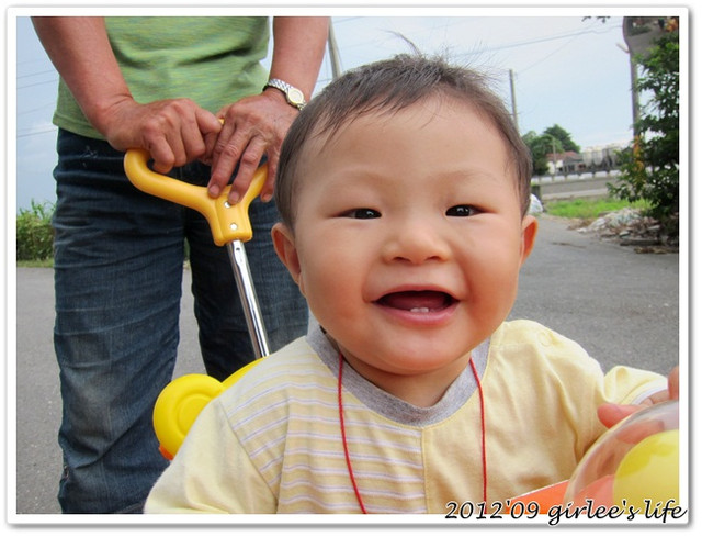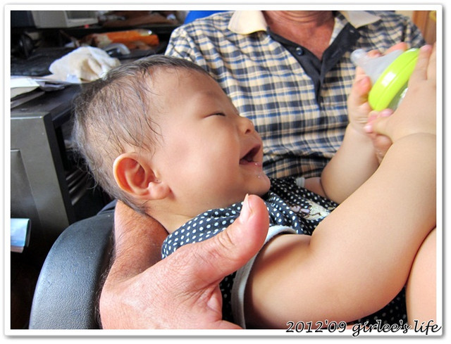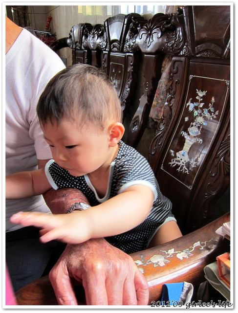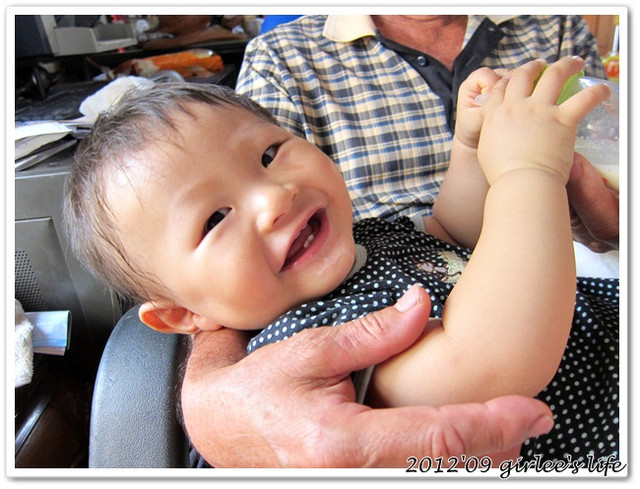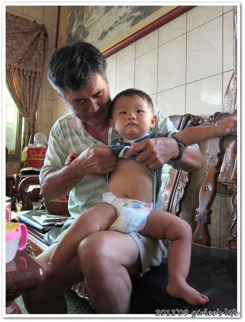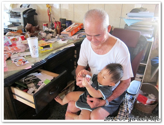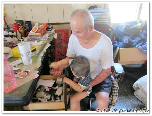 真是辛苦陳爺爺了..因為這階段的儒儒就像一隻靜不下來的蟲..東摸摸西摸摸..要一直顧著他才行阿