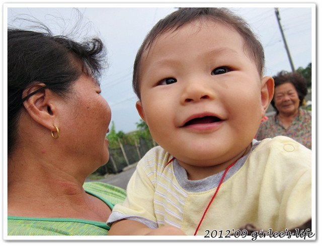 陳老媽很疼這金孫.所以儒儒很愛給阿嬤抱
