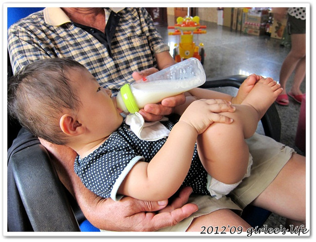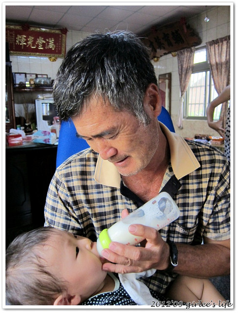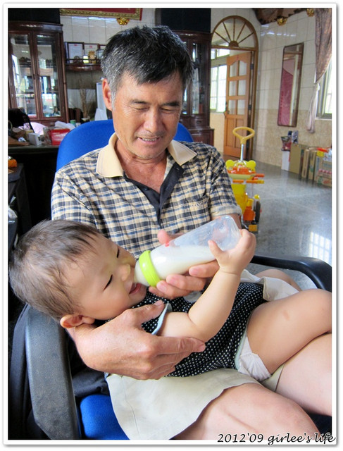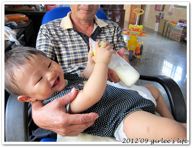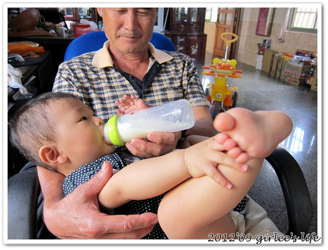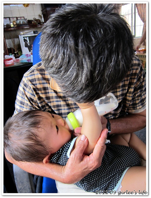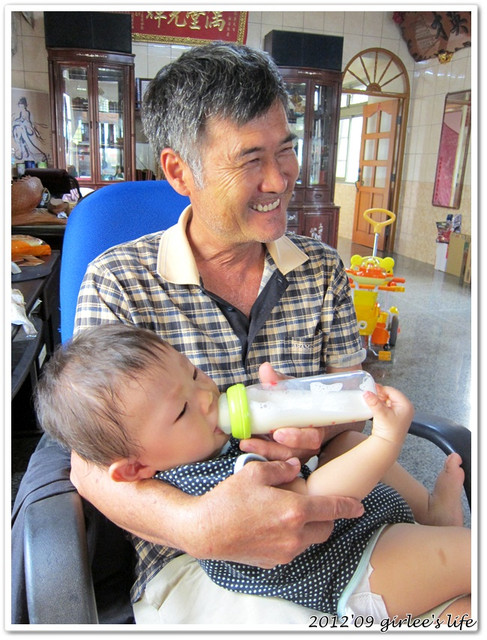 儒儒喝奶時.還不忘用胖胖小手摸阿公的臉..難怪阿公疼入心肝呢