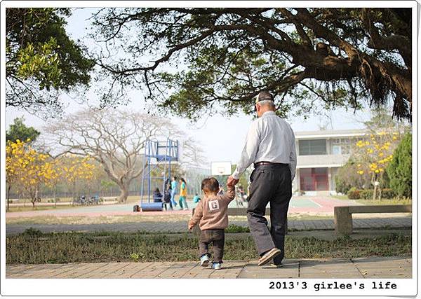 這天周末下午天氣好..我慫恿小儒儒硬拉不愛出門的陳爺爺一起去國小走走..