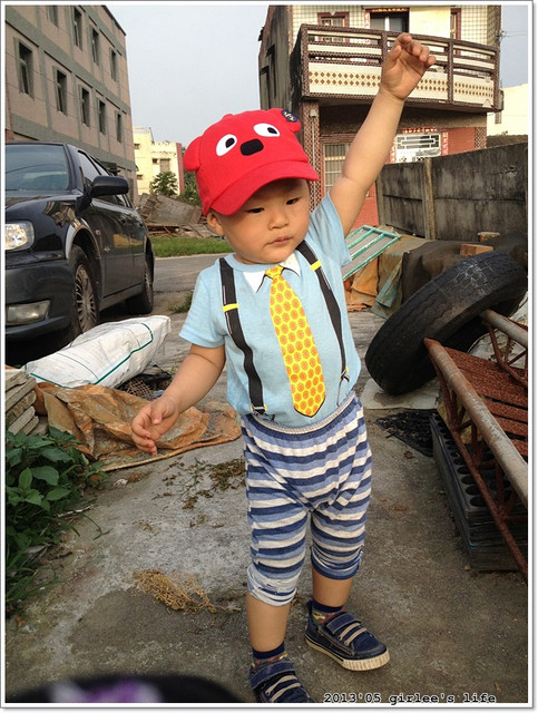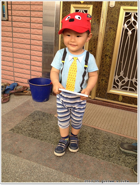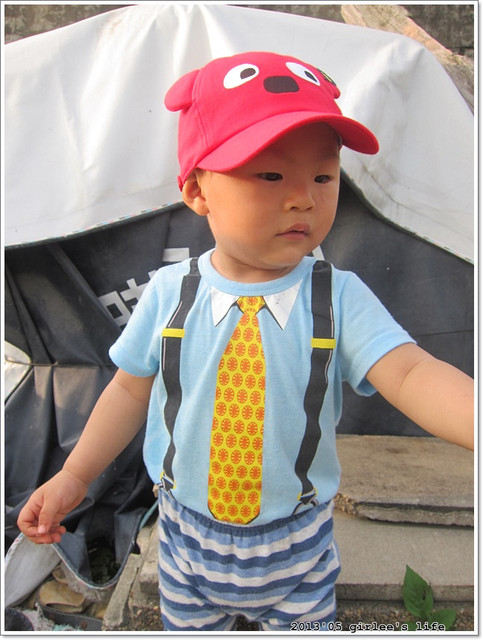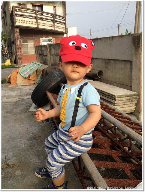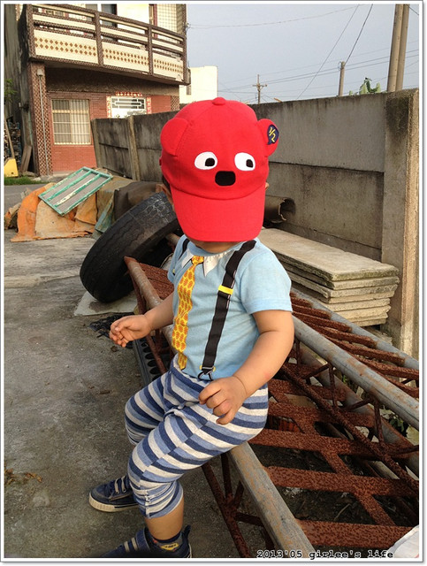 小儒儒這身行頭..帽子是我在why and 1/2童裝店賣的..(這家店的衣服好貴..我買了荷包在淌血