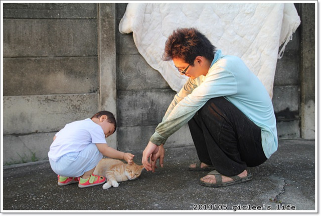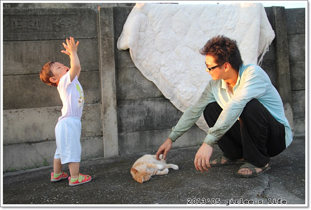 不過小小孩對於動物還不知道如何溫柔的對待..有時我看儒儒對貓咪的動作都很粗魯.我在旁看了都替貓咪覺得好痛@@.