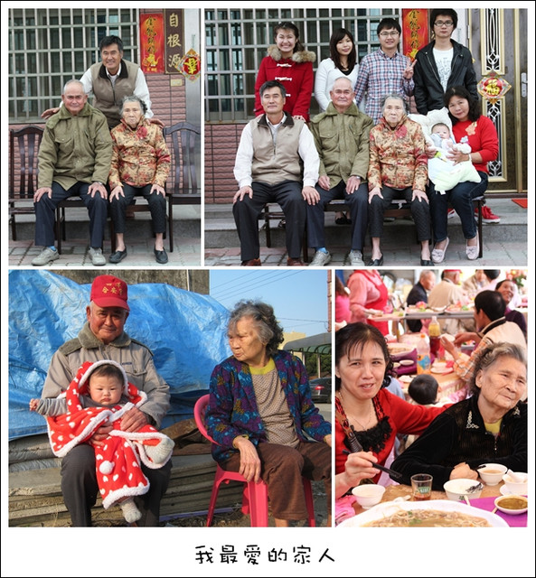 每年大年初一的全家福照.今年原本多了小儒儒好熱鬧..但明年卻少了陳奶奶了..
