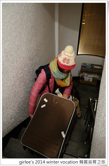 旅館妹妹說我們房間在三樓(還是四樓?忘了)..可是沒有電梯.所以我們要自己扛著沉重的行李爬上去.