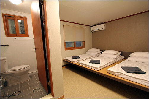 我們第一晚是住六人.加了二床..床上最多只放五床.另一床就只好鋪在地上