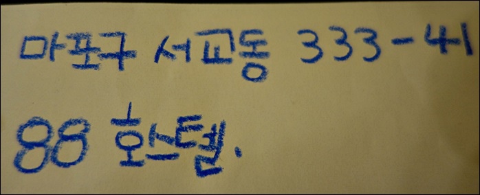 下面這個韓文地址是第一間旅館(HOSTEL KOREA 11th)的工作人員幫我們寫下來的.