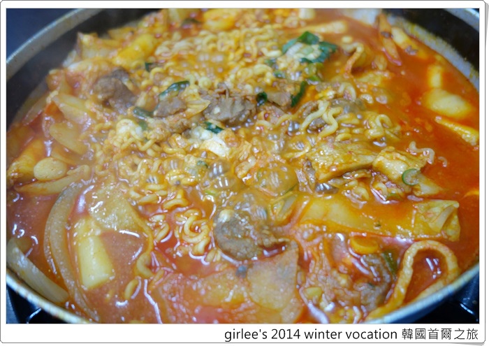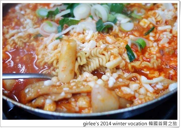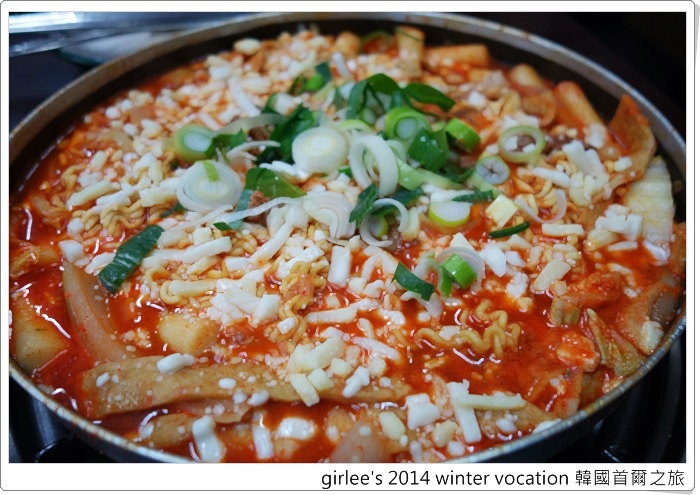 泡菜和起司的湯頭很濃郁.年糕和泡麵吸足了湯汁.超級美味的啦!
