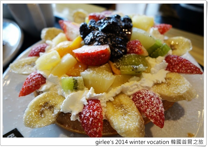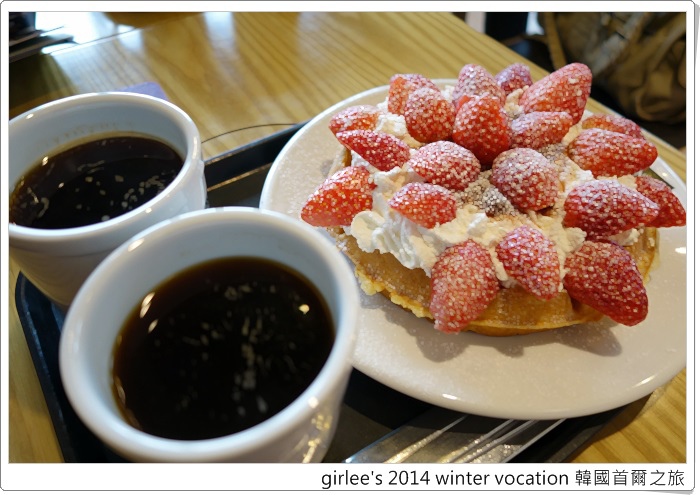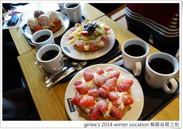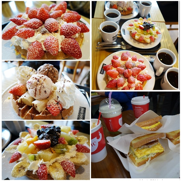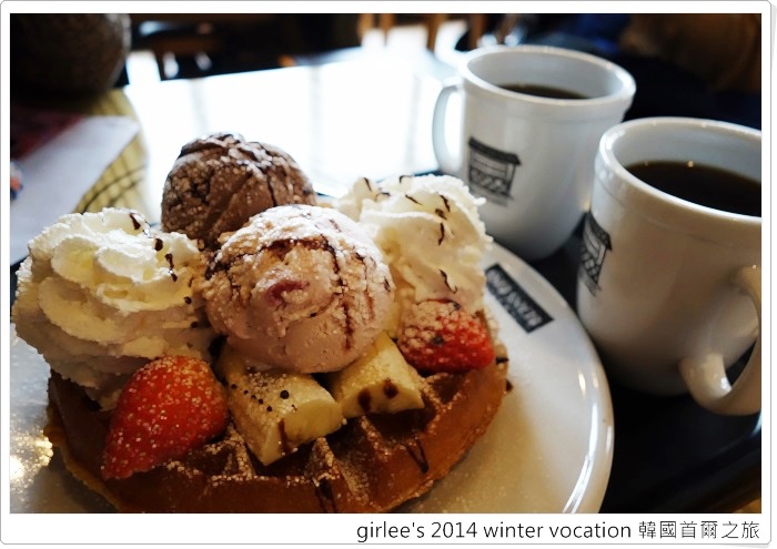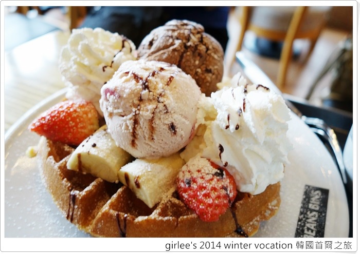 我們這次的六天韓國首爾之旅吃過不少美食..事後我有訪問了這些旅伴最喜歡的食物是什麼?有人說春川辣炒雞排的炒麵超好吃..有人說起司年糕鍋.有人說是仁寺洞巷子裡的那間傳統韓食.也有人說是這個BEANSBINS COFFEE的美味鬆餅.