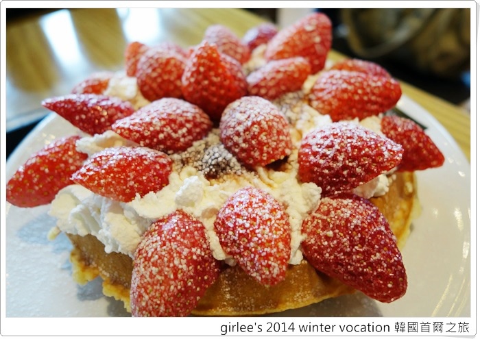 因為它看起來好漂亮又美味.店裡牆上一堆它的照片.而且草莓口味的鬆餅是有季節限定的~