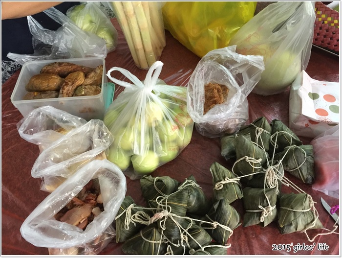 第一天的午餐很隨興.有個老人包了塊20顆的粽子.這當主餐.