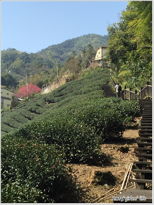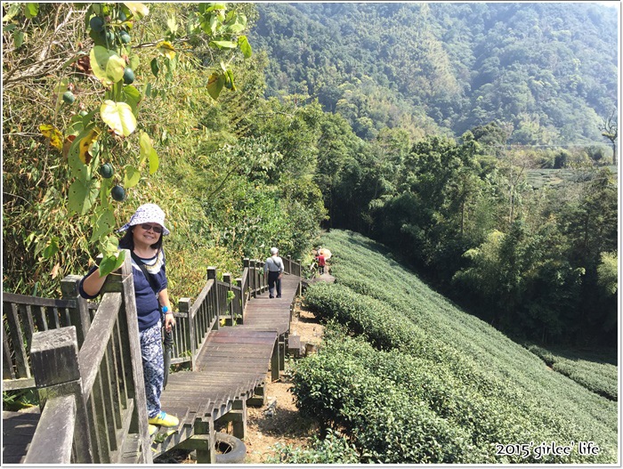 開始走步道了.木棧旁有茶園.看起來就很賞心悅目
