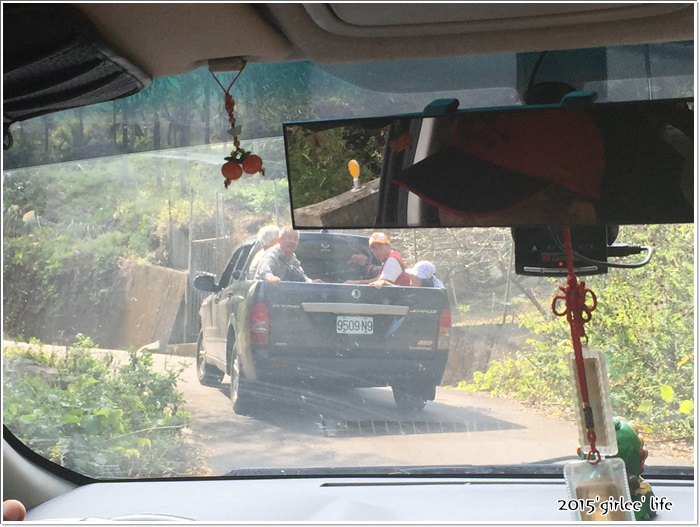 前面那台是旅館老闆的車.他載了一半老人.我們開一台車跟在後面