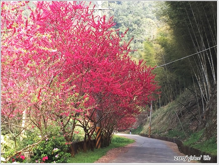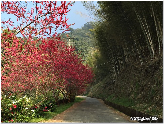 老闆帶我們走一條小山路.沿途有很多盛開的櫻花、桃花.超美的~~