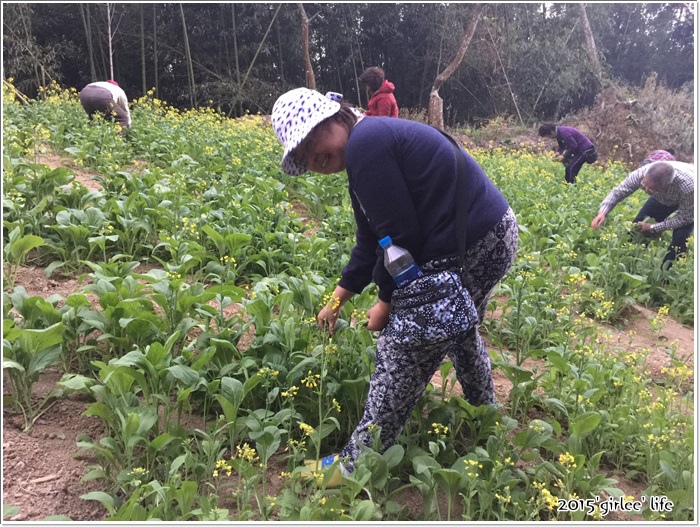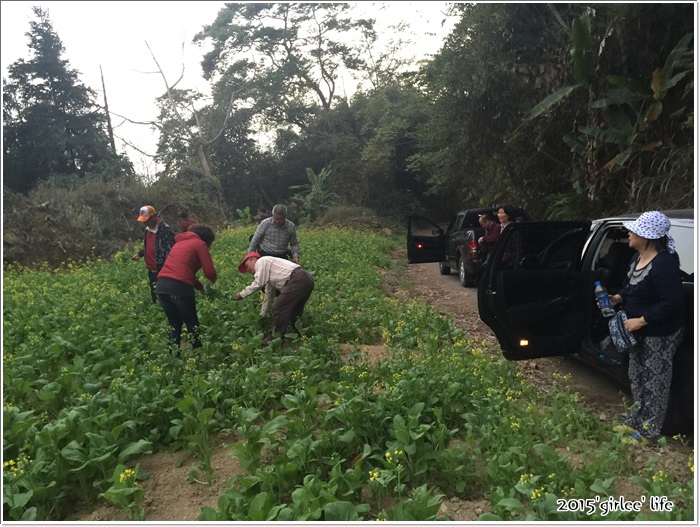 太陽下山後.這天的行程結束了..回去旅館的途中又停下來拔油菜花.晚餐可以加菜吃