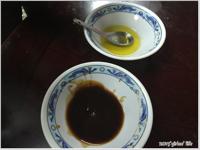 品質好的苦茶油可以直接淋在飯上吃.另一碗黑色的是醬油膏