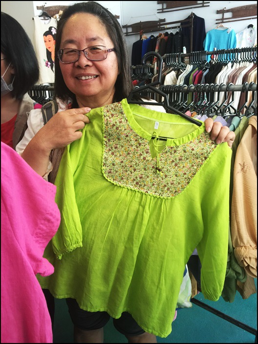 葉大姊和阿分姊兩人滿喜歡這樣風格的衣服.阿分姊後來買了左邊那件黑色的