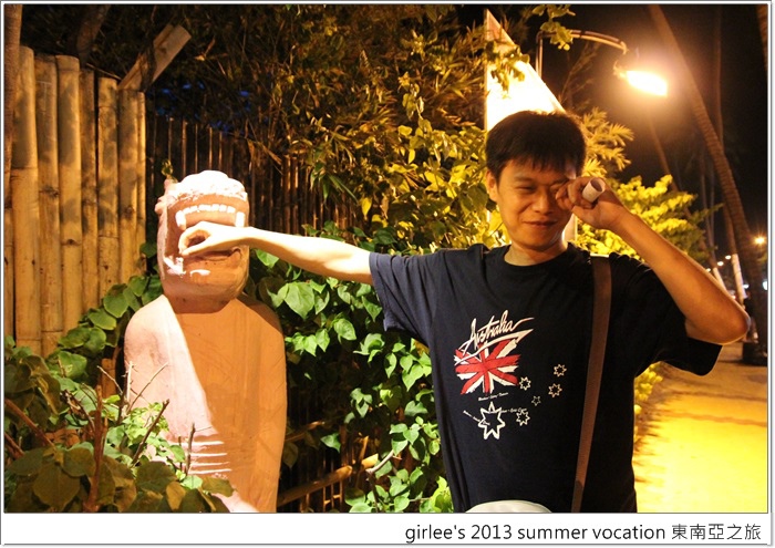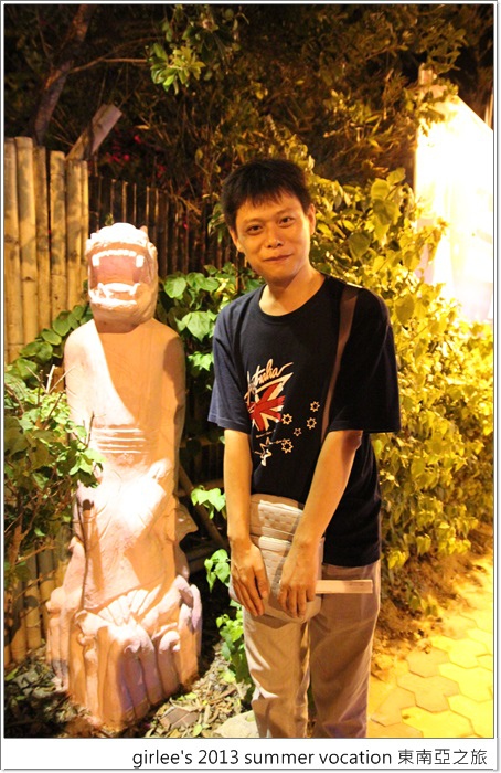 又繼續找..沿途看到一間餐廳門口的擺飾品..丁丁很搞笑的擺了這個姿勢