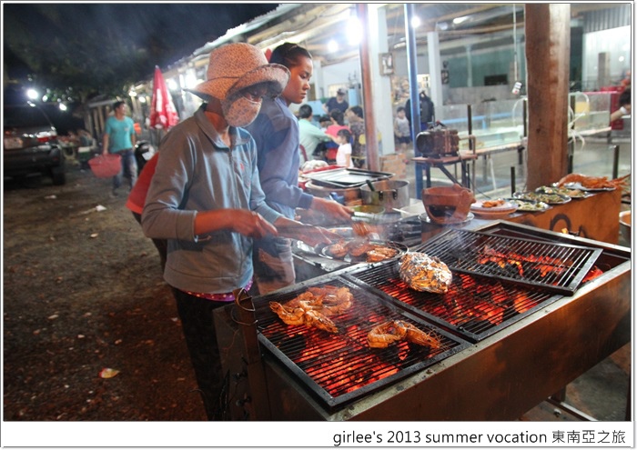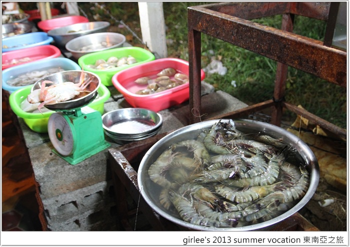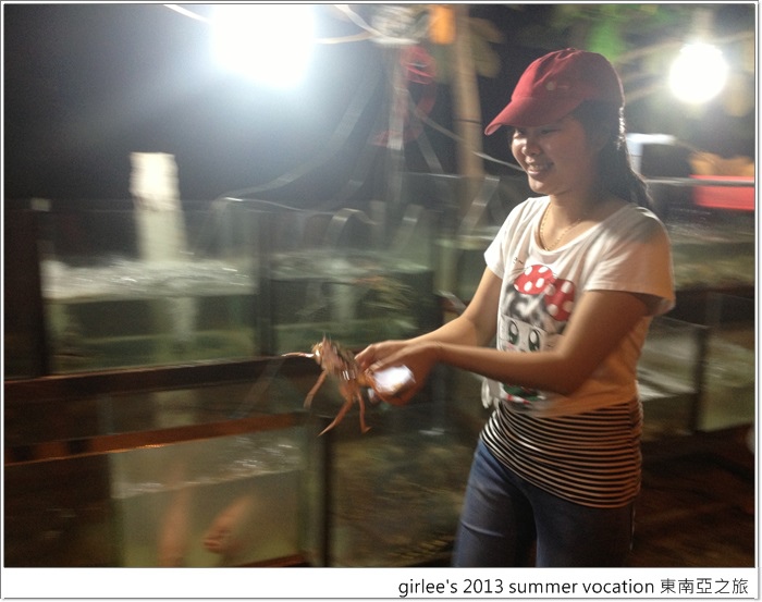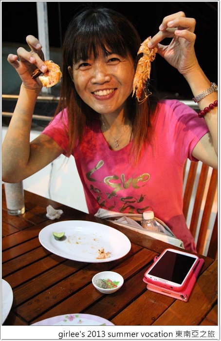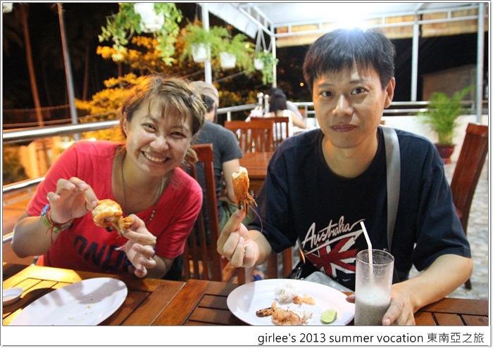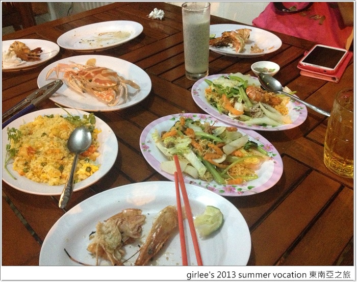 後來我們選了一家小餐廳.點了海鮮炒麵炒飯.又點了大隻烤蝦.丁丁自己點了一隻螃蟹.吃了一頓還不錯的海產大餐.