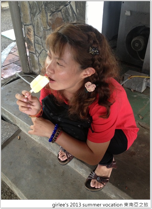 天氣很悶熱.我去雜貨店買了一支冰棒蹲在旁邊就吃起來了..小蔡說我這樣子很醜.跟我拿相機拍起來..