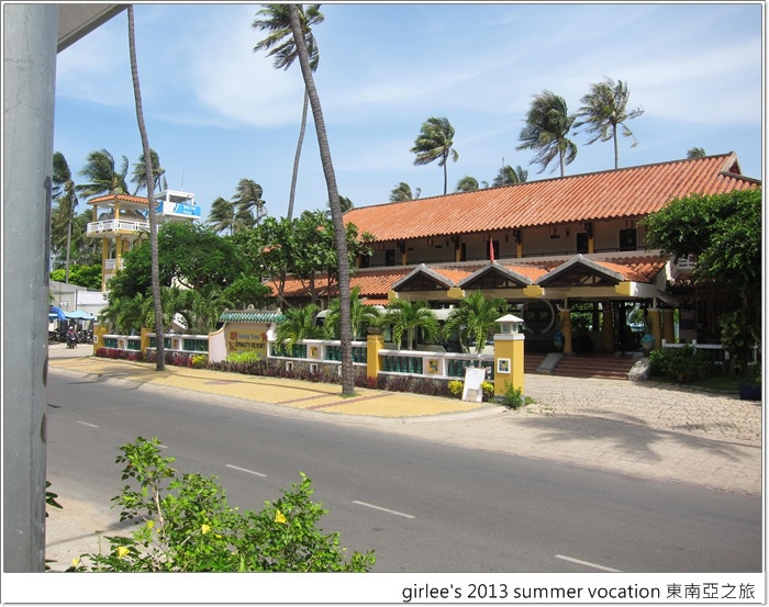 抵達美奈後.SHIN CAFE的巴士站在郊區的一間濱海小旅館門前.就是下面照片那間很中國風的建築