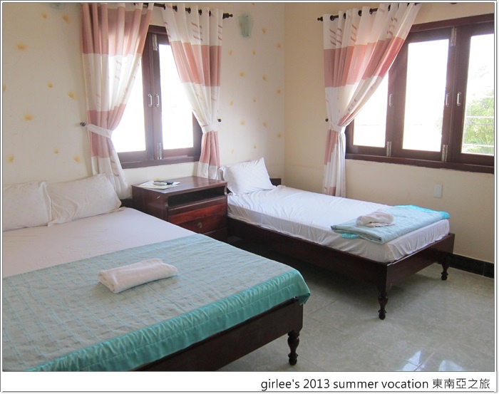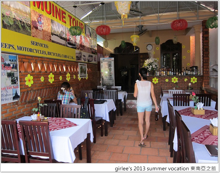 從胡志明坐巴士來美奈大概要六七個小時.是一段還滿長的路程.但中間會停休息站可以下車走走吃東西.下午抵達美奈後.我們先找地方吃午餐休息一下.吃飽再慢慢找住宿的地方.我們找到一間還滿便宜乾淨的小旅館.雙人房有衛浴間和冷氣.採光很好.一晚只要10美元.