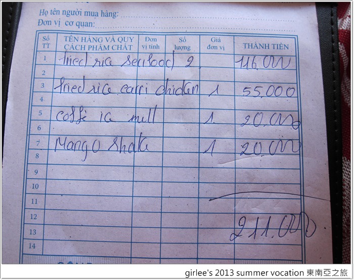 我點了雞肉口味的炒飯(越幣55000).大概台幣80元.在這裡算是很貴的消費了