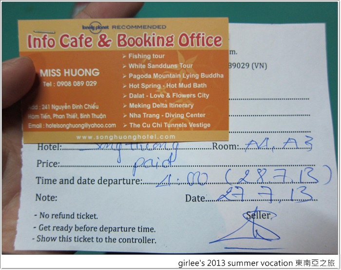 在遇到丁丁之前.我和小蔡對於美奈(Mui Ne)這地方很陌生.好像從來沒聽過..但來過越南好幾次的丁丁一直大力推薦這地方阿!他說景色很美、海產好吃.他很喜歡這裡.一直叫我們一定要來這裡..被他鼓吹後.我們就買票來囉!