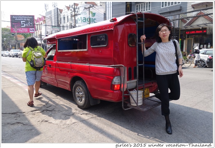 我們把行李寄放在櫃台.在門口攔了一台雙條車.跟司機說我們要去尼曼明路.(四個人沒辦法坐一台嘟嘟車.只能坐雙條車)