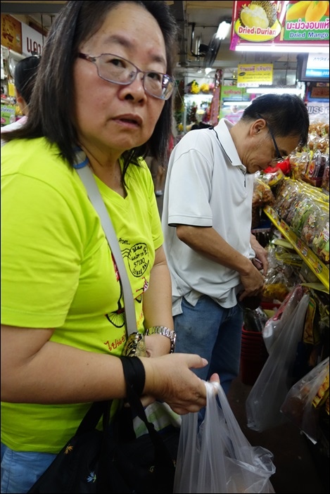 阿分姐去菜市場買了一堆水果和炸豬皮.還有炸溪蝦之類的零食