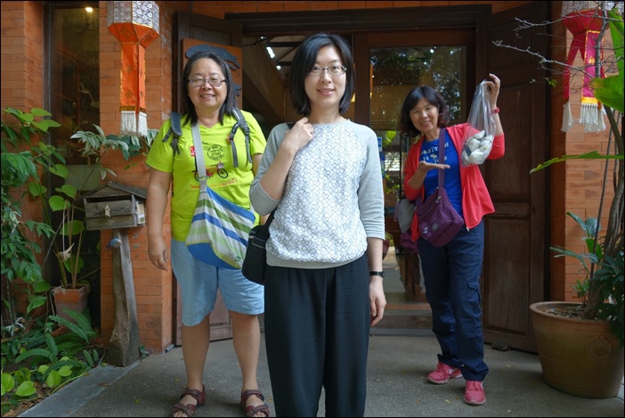 這天早上我們兵分三路.阿分姐和我想衝去瓦哈洛市集最後大採買.但13和葉大姐對這些東西沒什麼興趣.所以我們就各自行動.相約11點半回到旅館check out退房與寄放行李.我和阿分姐兩人買了一堆可愛動物吊飾、泰北花布包、錫碗、芒果乾..很愛按摩的13跑去做了舒服的按摩.整個人神清氣爽..而葉大姊則待在旅館陽台悠閒地用手機在FB上記錄這幾天的旅遊心得.
