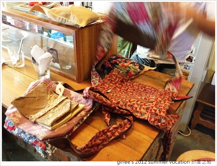 後來我又去了第二次.採購了照片底下的便當包巾(230rs)、小收納包(200rs)、布書套(200rs)