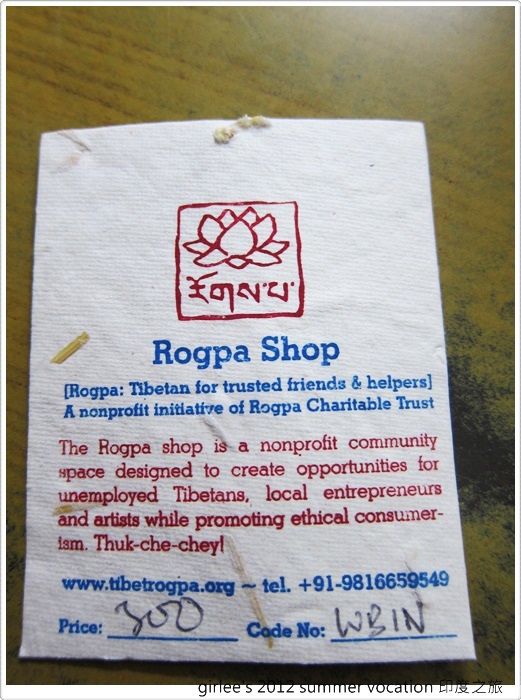 Rogpa Shop & Cafe除了提供好喝的咖啡和手工甜點外.這裡販賣著由藏族婦女手工製做的包包和小調式商品.還有其他背包客留下來的二手衣物..等.我買了一堆花色特別的包包.到現在還是好喜歡、愛不釋手.
