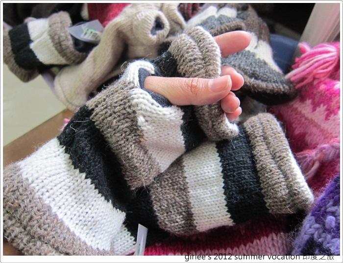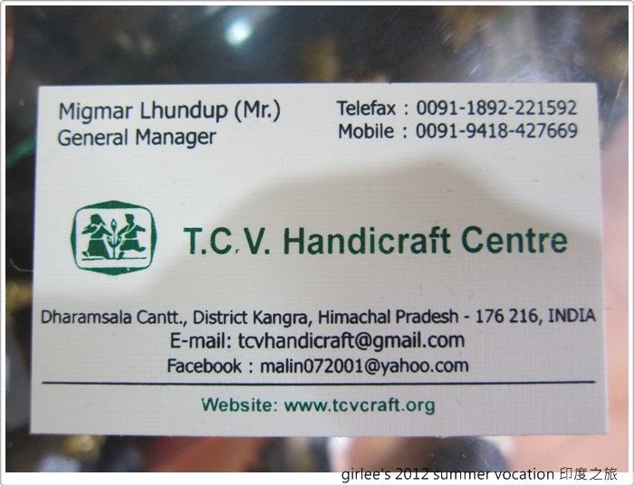 而TCV Handicraft Centre則是西藏兒童村組織(TCV)的工藝品展示中心.這裡販賣著各式的藏式衣物、唐卡、編織地毯、手工毛襪毛襪、手工筆記本..等.所得用來支助西藏難民兒童的教育.我在這裡買了好幾個毛襪、毛手套和毛襪.每一個都很作工紮實又保暖.