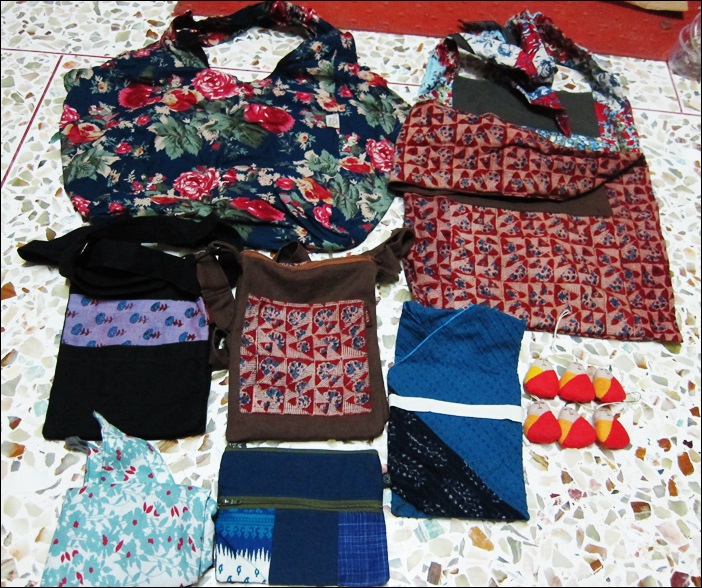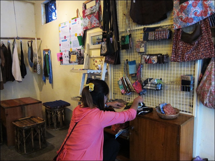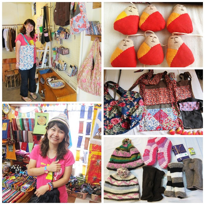 這裡幾乎都是西藏婦女手工縫製的布包、小吊飾、小錢包、手工卡片..等